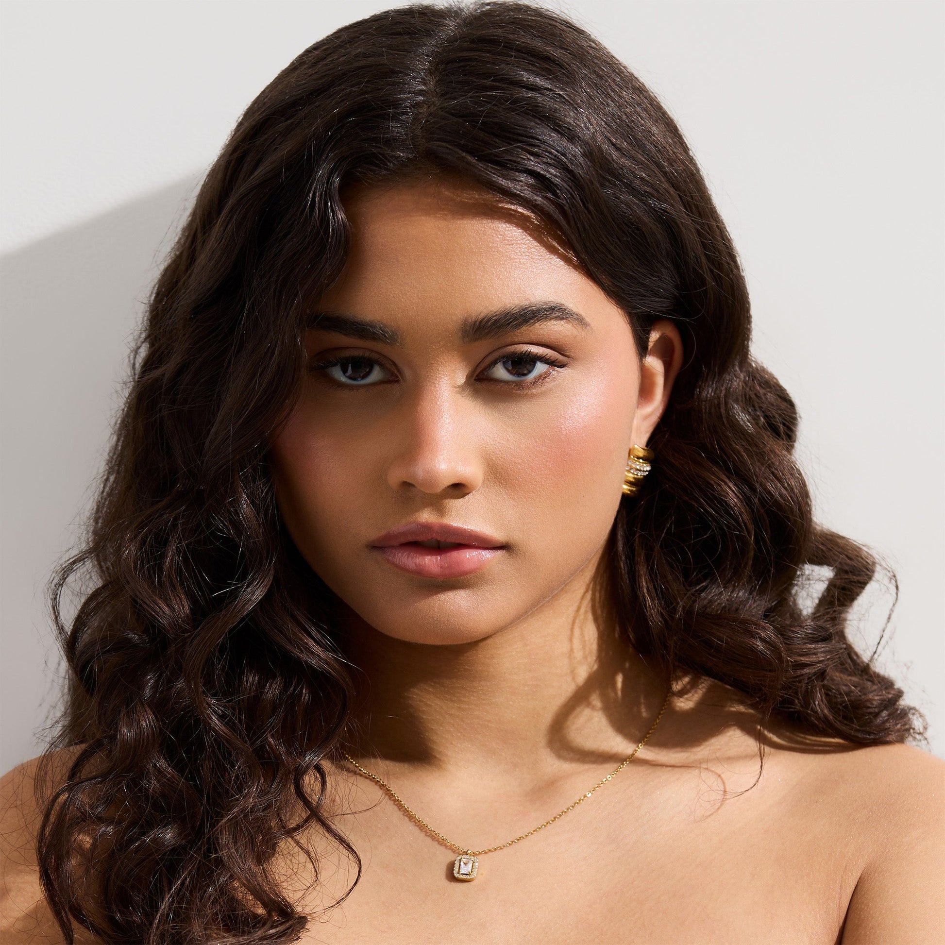 When you need jewelry that shines as bright as you do, reach for the You’re Glowing Necklace. An emerald-cut center crystal is surrounded by a halo of pavé stones—framed in polished gold—for a look that’s all about luminous elegance.